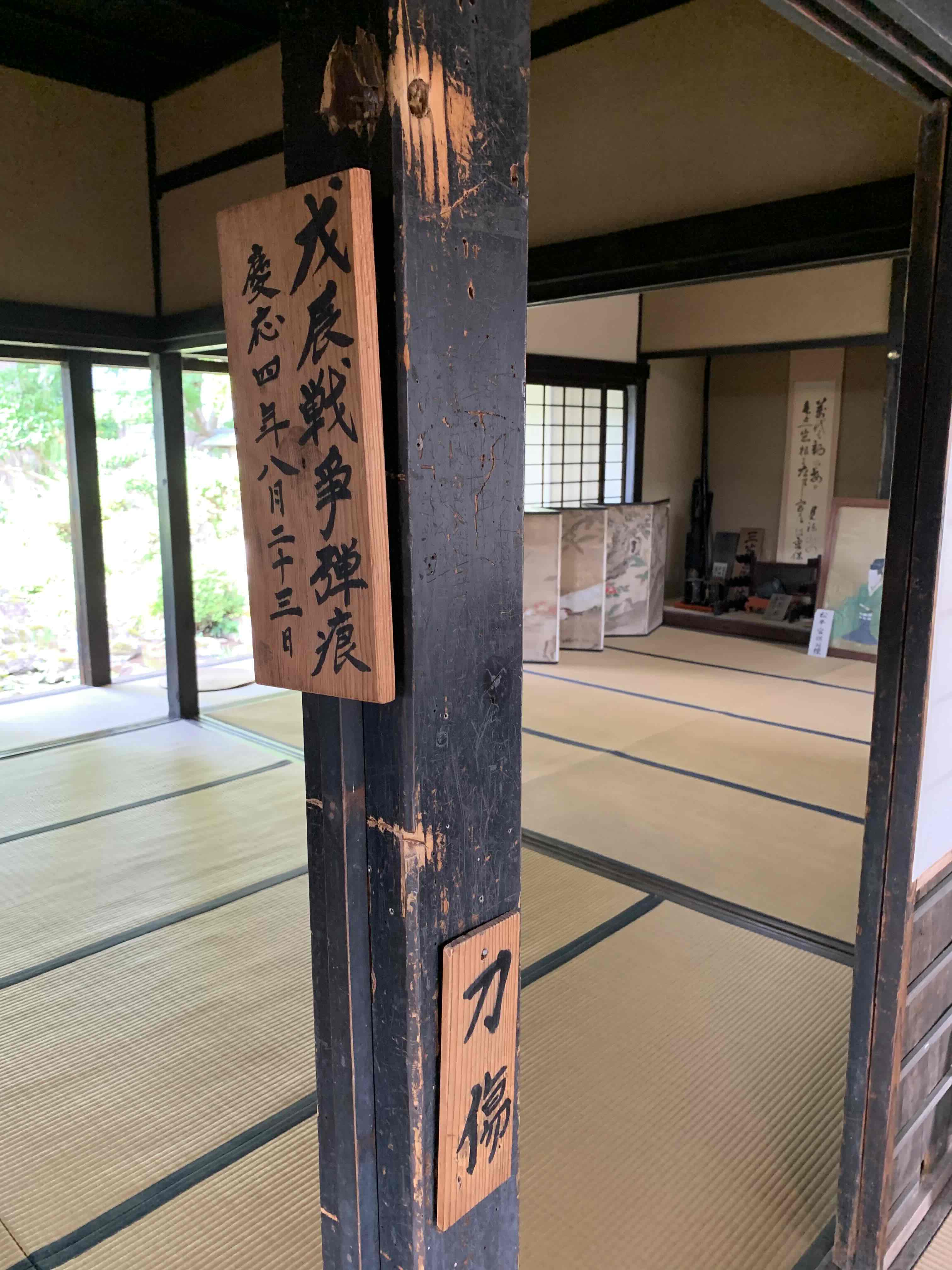 戊辰戦争の争いの後が生々しい…。他当時の食器類などが展示されてました。