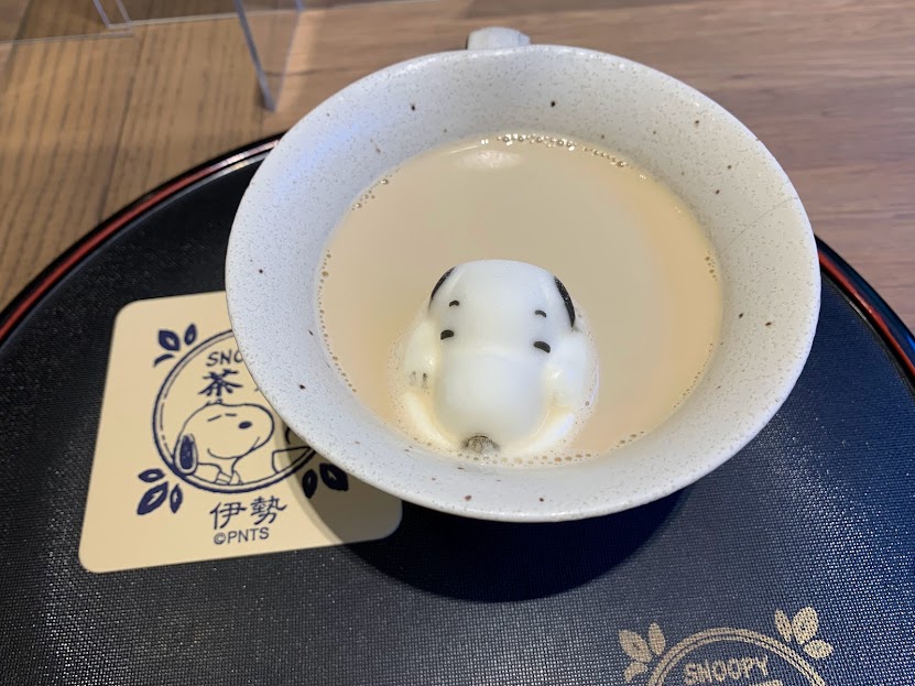 スヌーピー茶屋。かわいいでしょう~~。ほうじ茶ラテ。