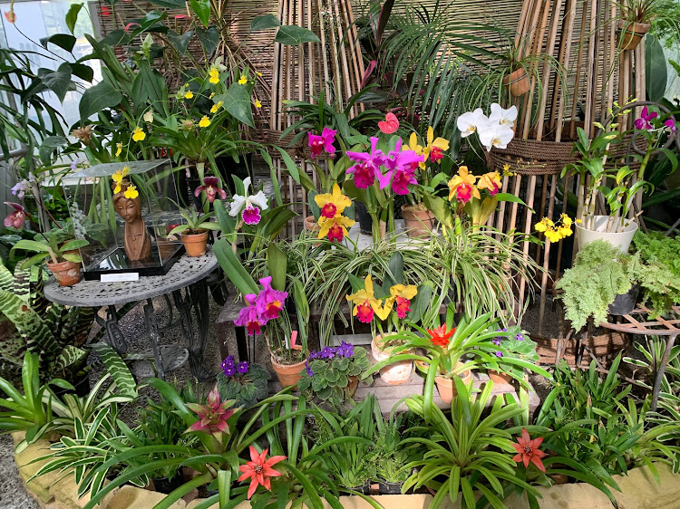 温室の中は色んな植物が植えてありました。蘭も余裕で咲ける温度。