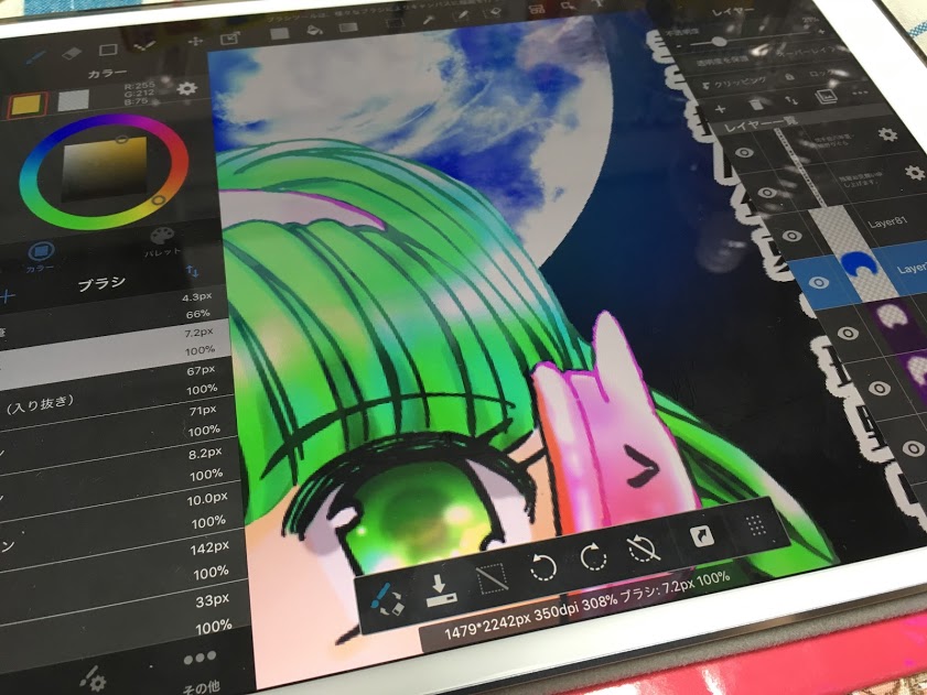 ちなみにipod proで描いたものをPCに送って、フォトショエレメンツで手直し等するんですけど、色合いがほぼ同じ時、やや似てる時、かなり違う時とあって、何で???