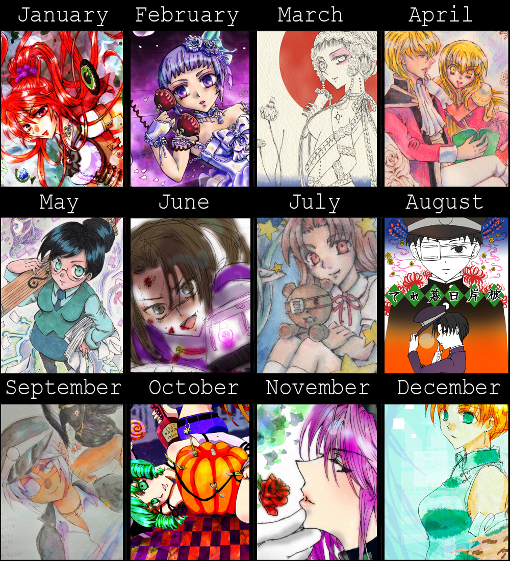 オリジナル:1~3月、7月、9~12月。FE聖戦の系譜~エルラケ:4月。IMERUAT:5月。艦これ~足柄:6月(ほんとは5月末)。