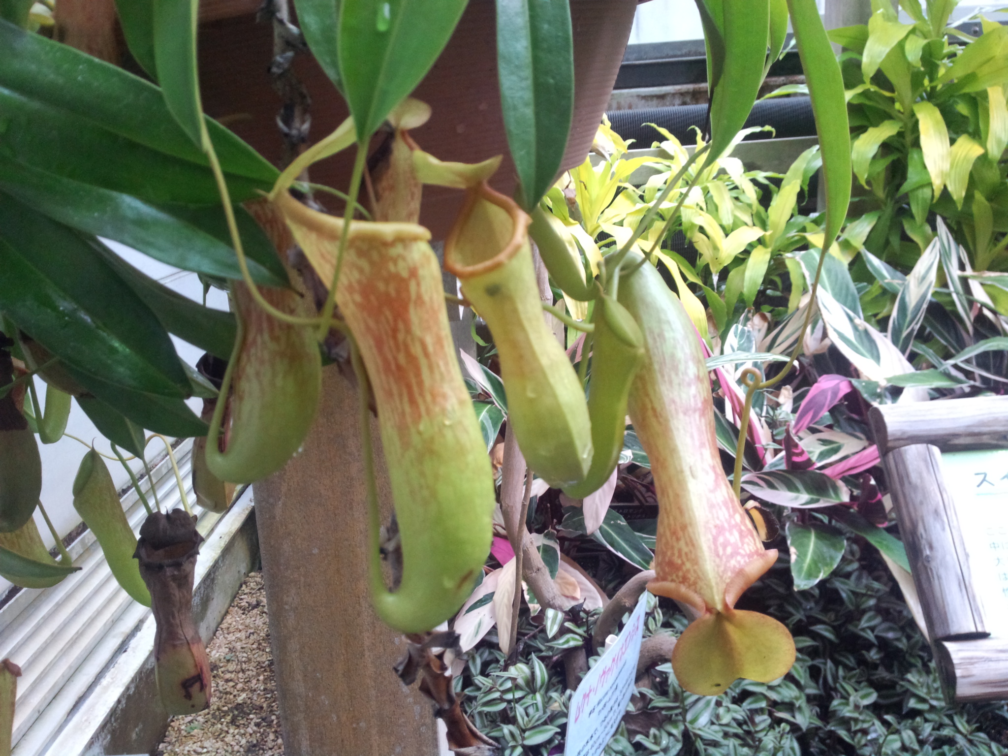 ウツボカヅラの底を切って管理されてた。某植物園にて。